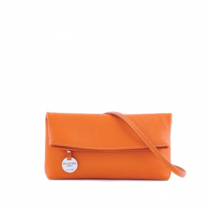 • leather crossbody clutch bag with flap closure grey with pink trims front view