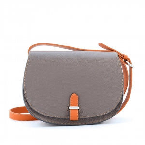 • Bea - italian leather crossbody bag in mud color and cherry red trims