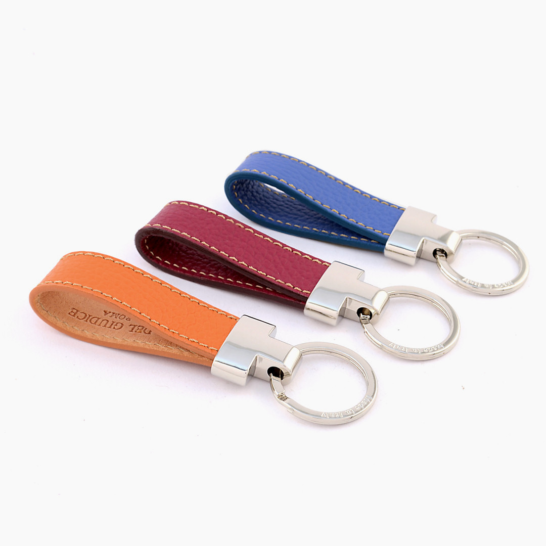 Italian leather loop keychain with polished metal hardware and optional personalised engraving. A refined accessory and a thoughtful gift idea.