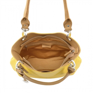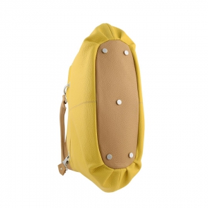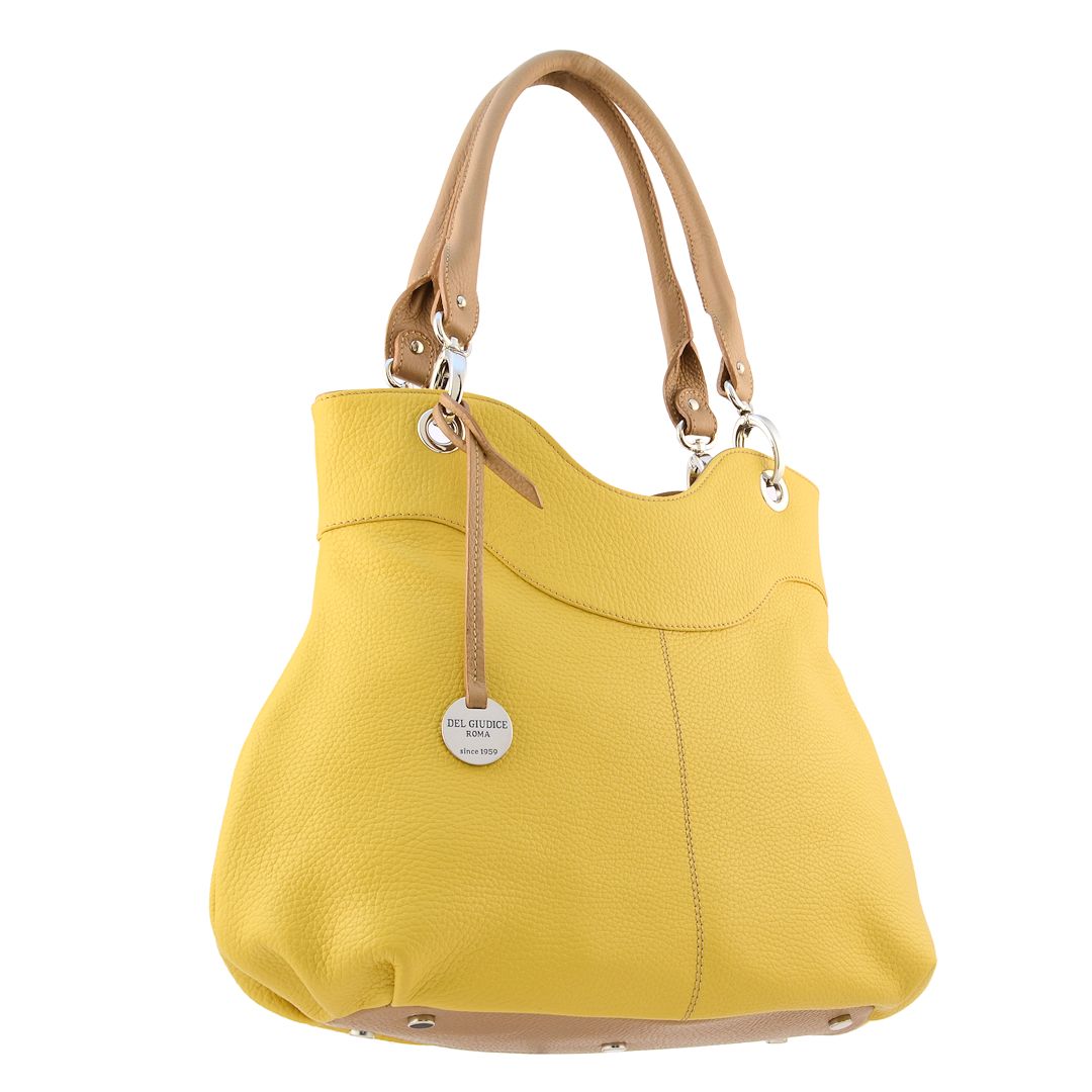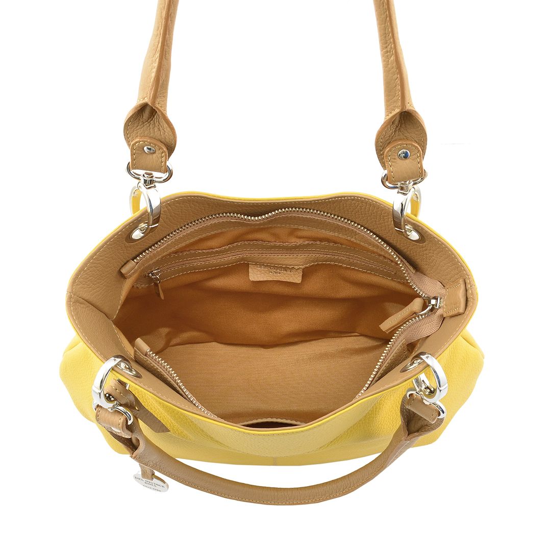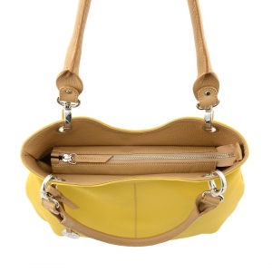 Borsa in pelle da donna caratterizzata da un’elegante forma sinuosa, completata da doppio manico e chiusura con zip.