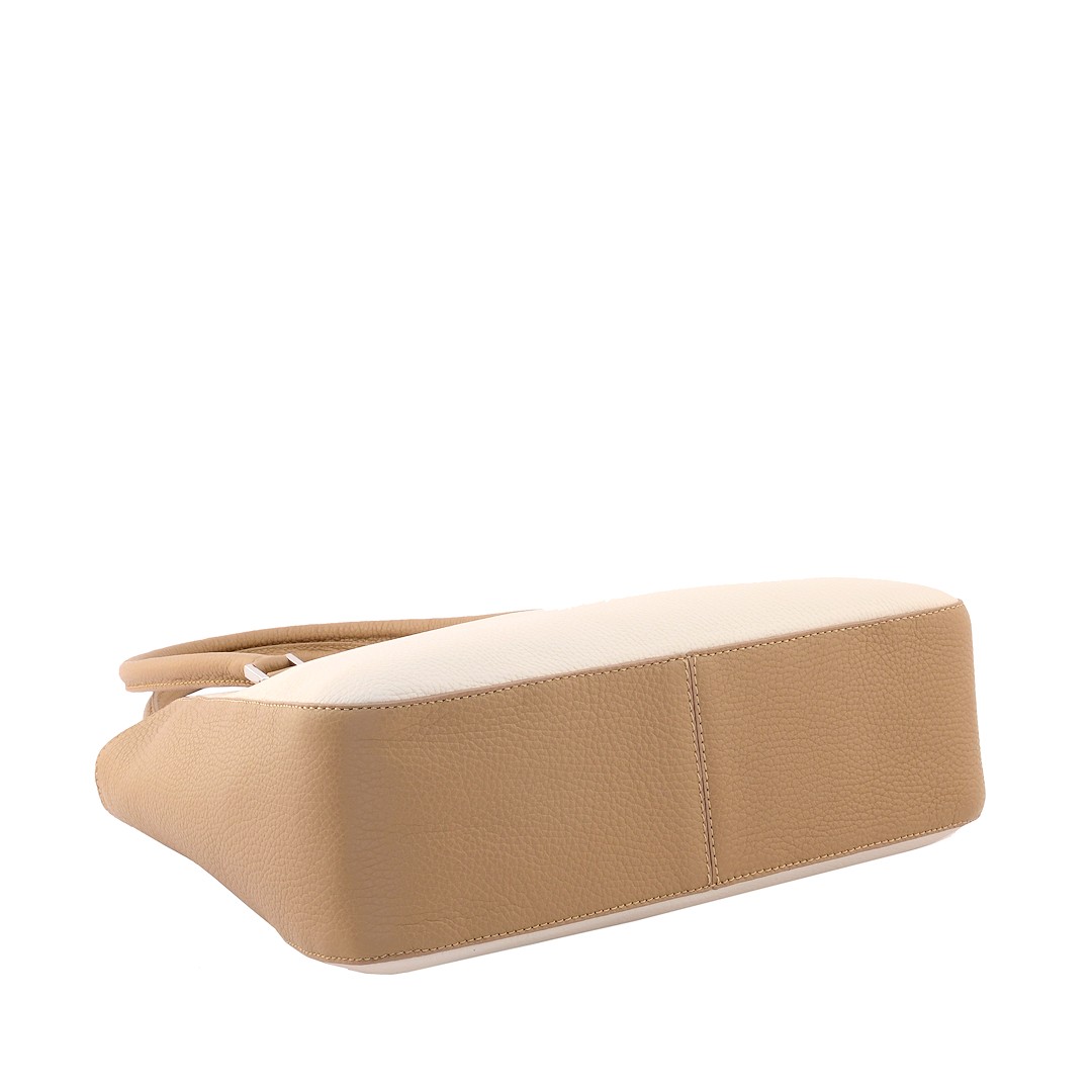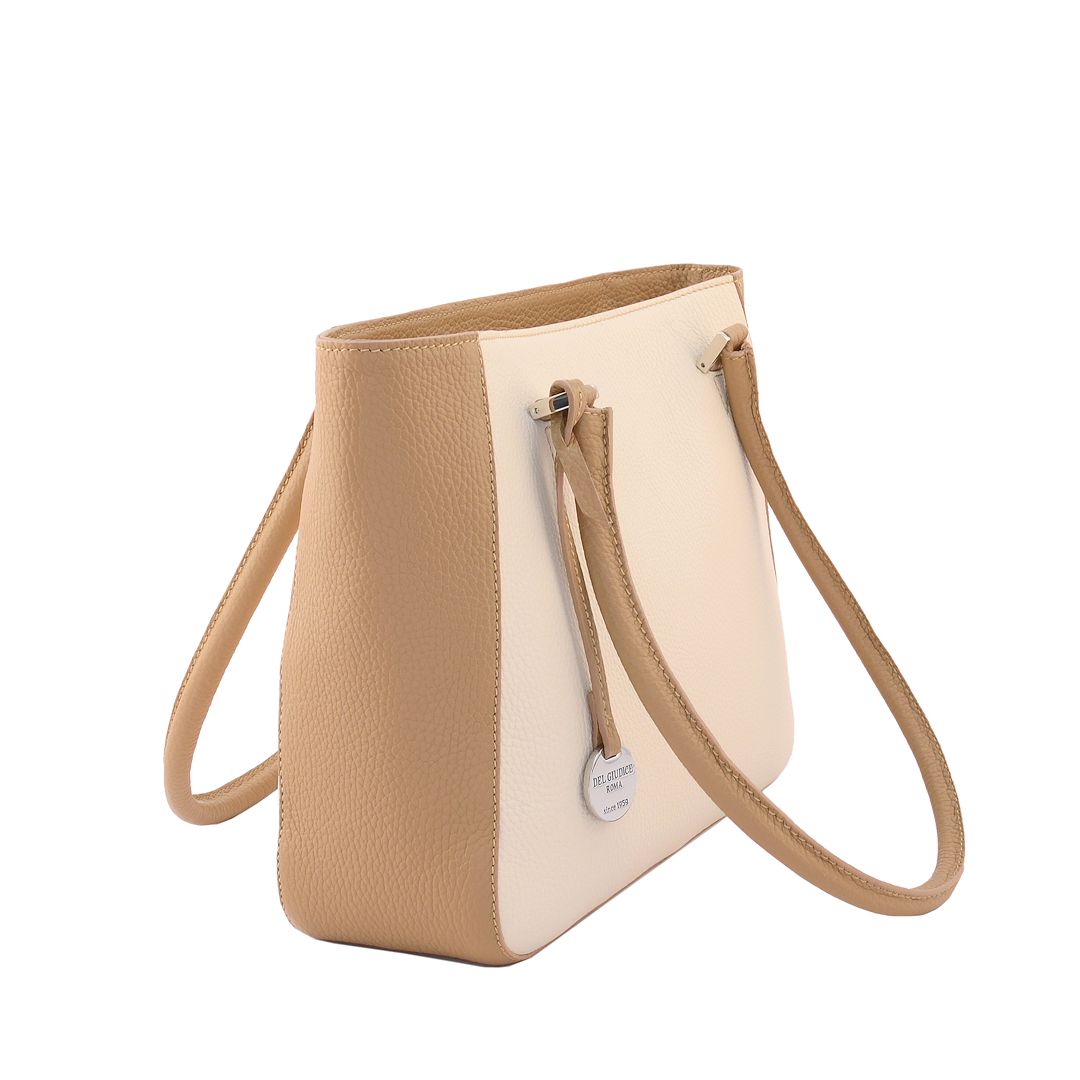 Borsa artigianale in pelle per donna dalla forma classica e con tre scomparti interni, da indossare a mano oppure a spalla.