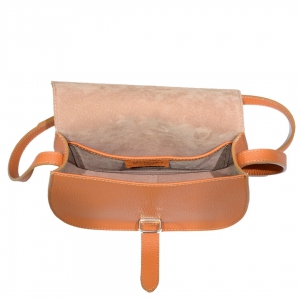 Realizzata in pelle di vitello con bordi a taglio vivo finemente rifiniti, questa borsa a tracolla da donna, presenta una raffinata chiusura a pattina e un pratico taschino multifunzione interno. La fodera in pelle scamosciata di cinghialino aggiunge un tocco lussuoso e il design a bisaccia completa un accessorio compatto e sofisticato. Disponibile anche in versione piccola Irina 21.