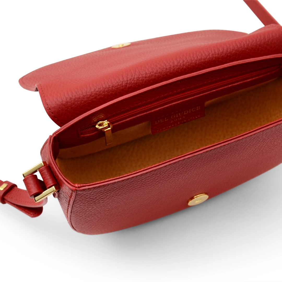 Elegante borsa a tracolla dalla silhouette arrotondata, questo modello presenta un caratteristico accessorio dorato recante le lettere stilizzate D e G (dal cognome Del Giudice), che la rendono “Unica”. L’idea dietro a questo modello è la creazione di un qualcosa di identificabile e riconoscibile.