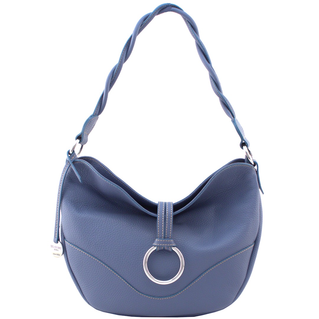 • Moon-Borsa a spalla in pelle artigianale da donna colore grigio cenere-Sku 2531