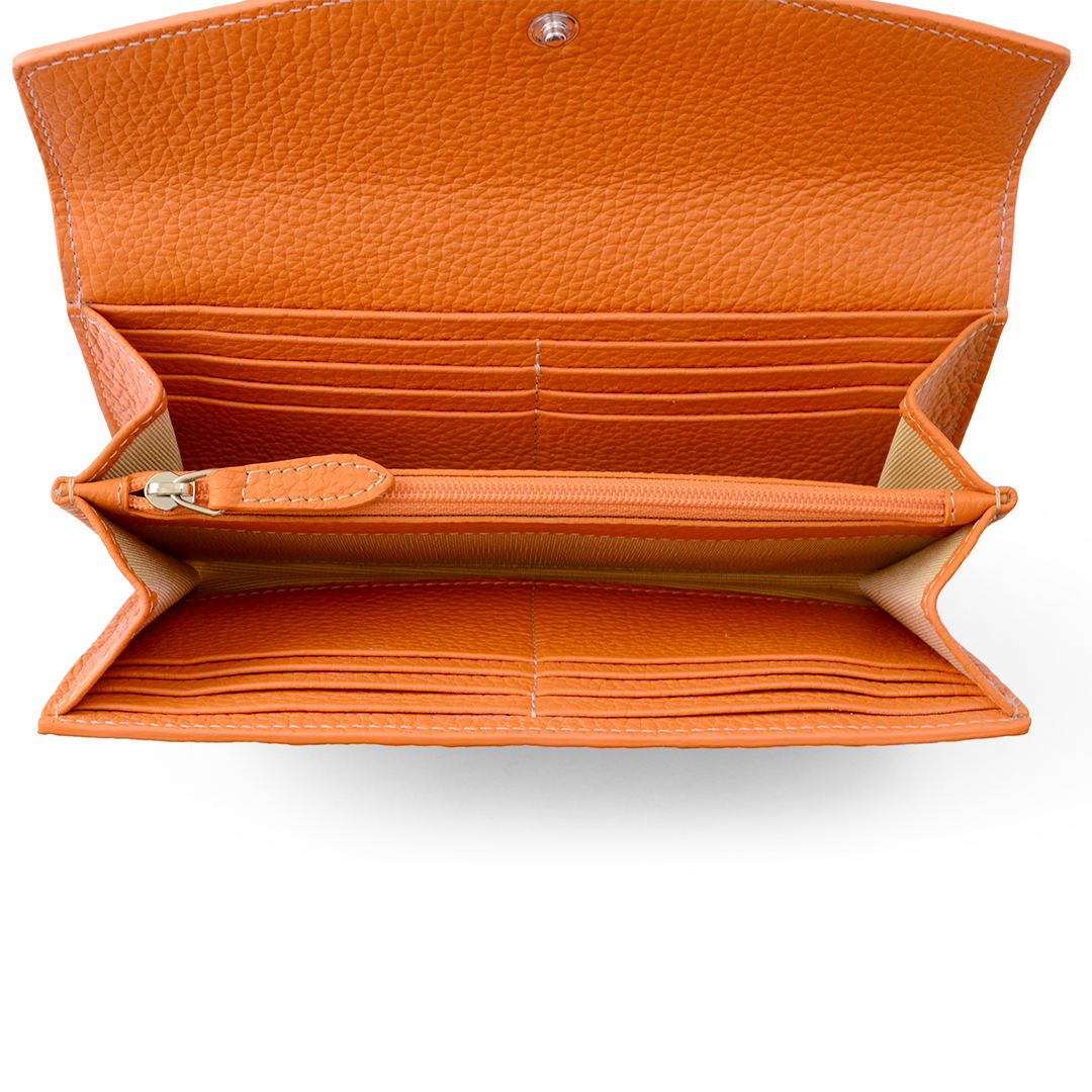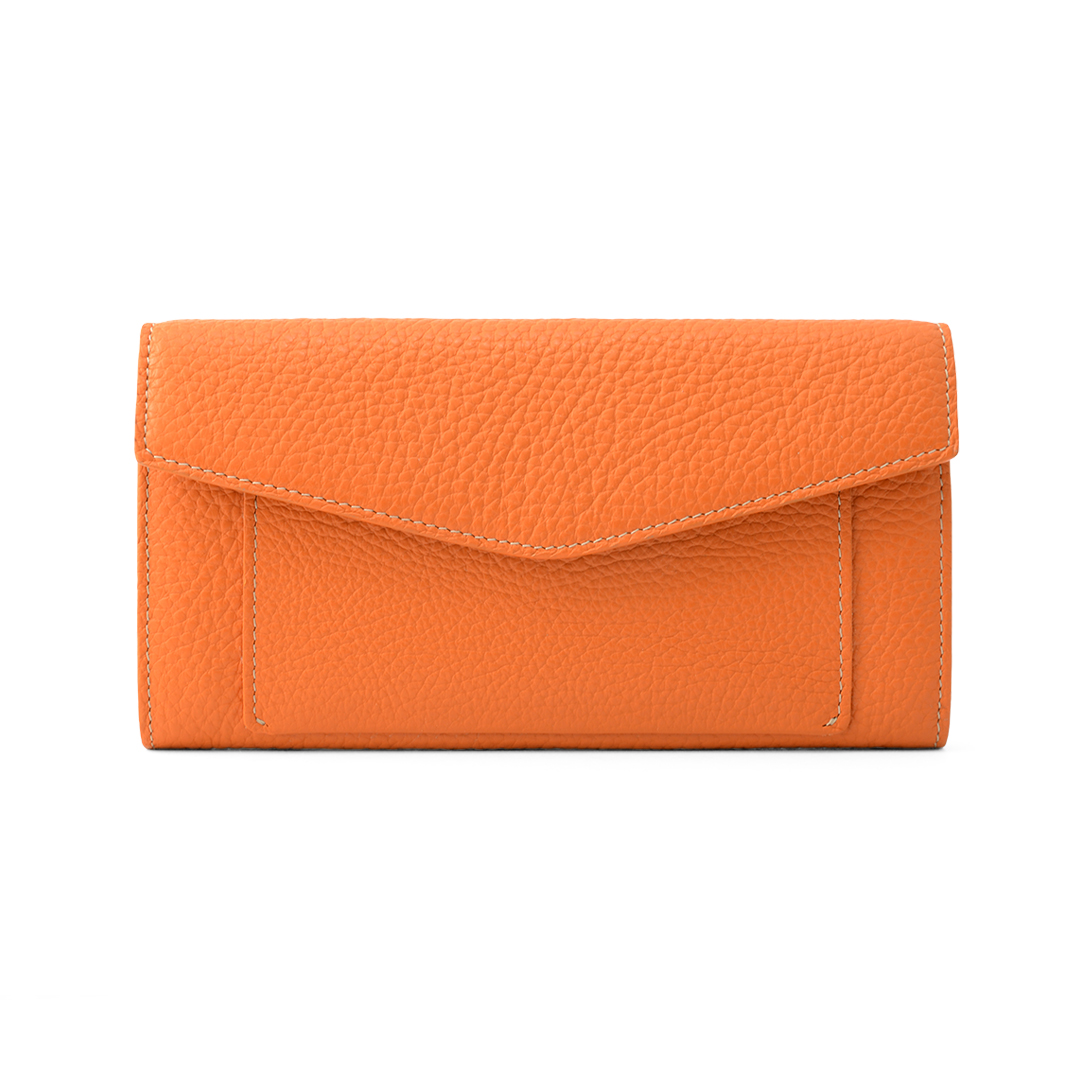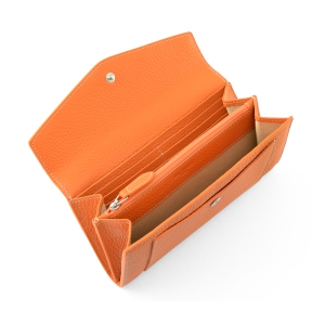 Questo portafoglio donna lungo in pelle è realizzato in morbida pelle di vitello martellata e coniuga ordine e raffinatezza. All’interno trovi 16 slot per carte, quattro tasche multifunzione—una con zip per le monete—due pratici scomparti per banconote e una tasca esterna per ciò che usi di più. La chiusura a bottone mantiene il contenuto al sicuro, mentre il profilo sottile scivola facilmente in borsa. Un accessorio essenziale che unisce eleganza senza tempo e funzionalità quotidiana.
